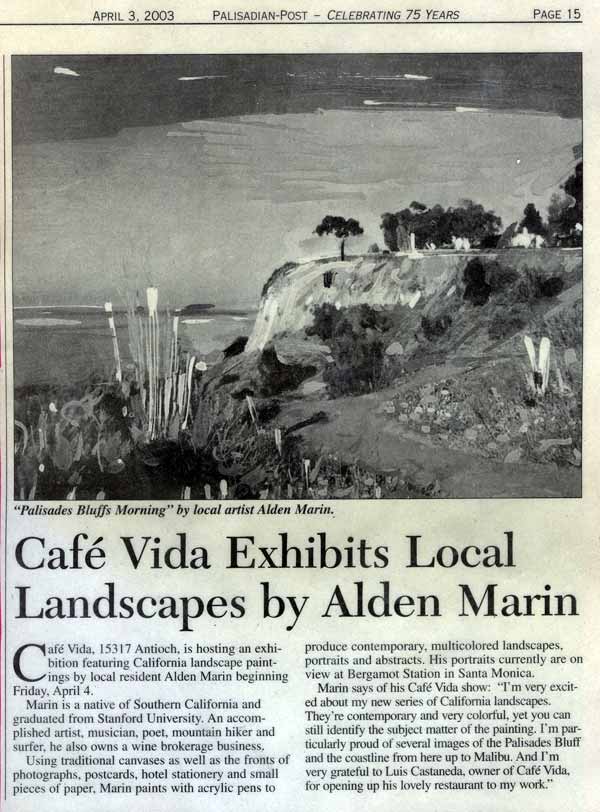 | CAFE VIDA in Pacific Palisades. April of 2002 |