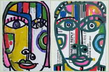These spontaneous drawings were done on restaurant receipts, coffee cups, coffee cup sleeves, napkins and other found objects.