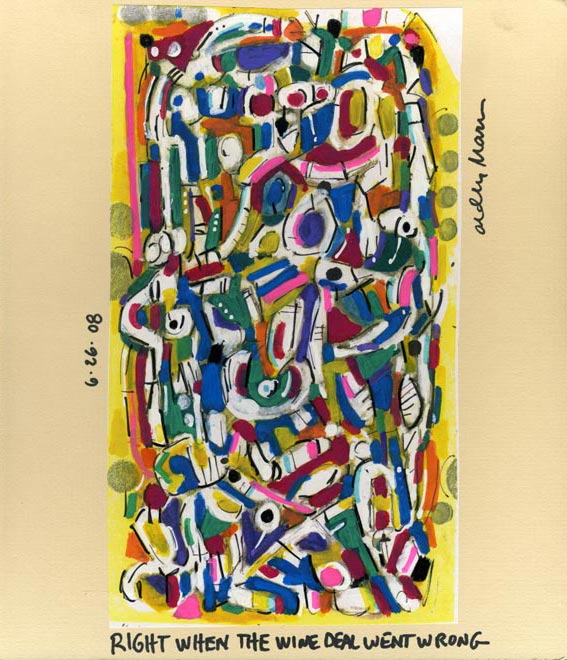 Right When the Wine Deal Went Wrong 2008. 9 1/2 x 8 1/2" enamel pen, whiteout, sharpie and pen on paper