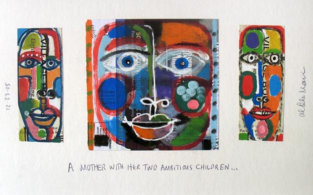 A Mother With Her Two Ambitious Children 2005. 8 1/2 x 13 1/2" enamel paint, whiteout, sharpie on board