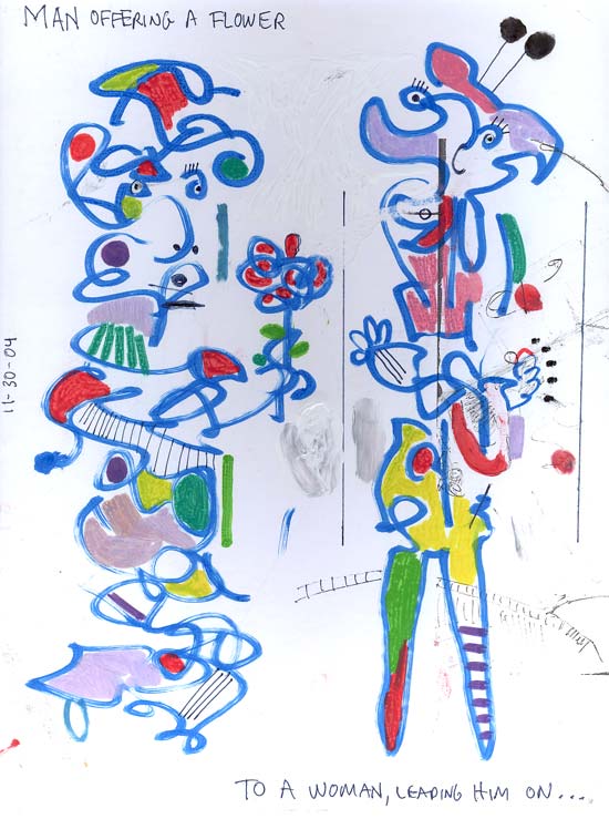 White out and acrylic paint and pencil on paper.